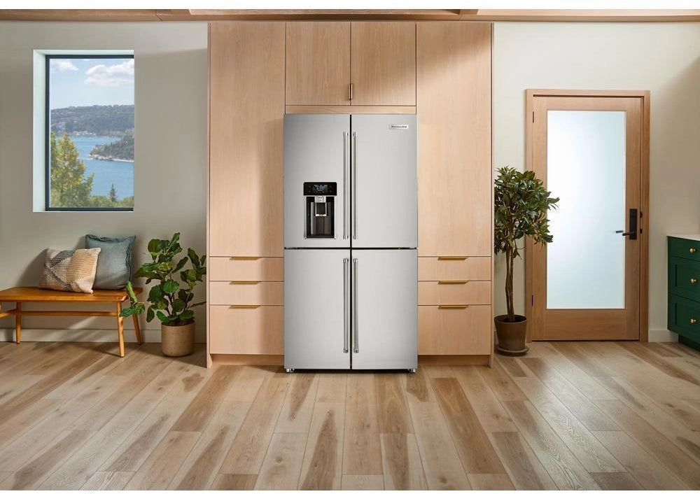 The KitchenAid KRQC736RPS 36" Counter-Depth 19.4 Cu. Ft. 4-Door Refrigerator is designed with entertaining in mind, offering a spacious interior and advanced features to enhance your kitchen experience.