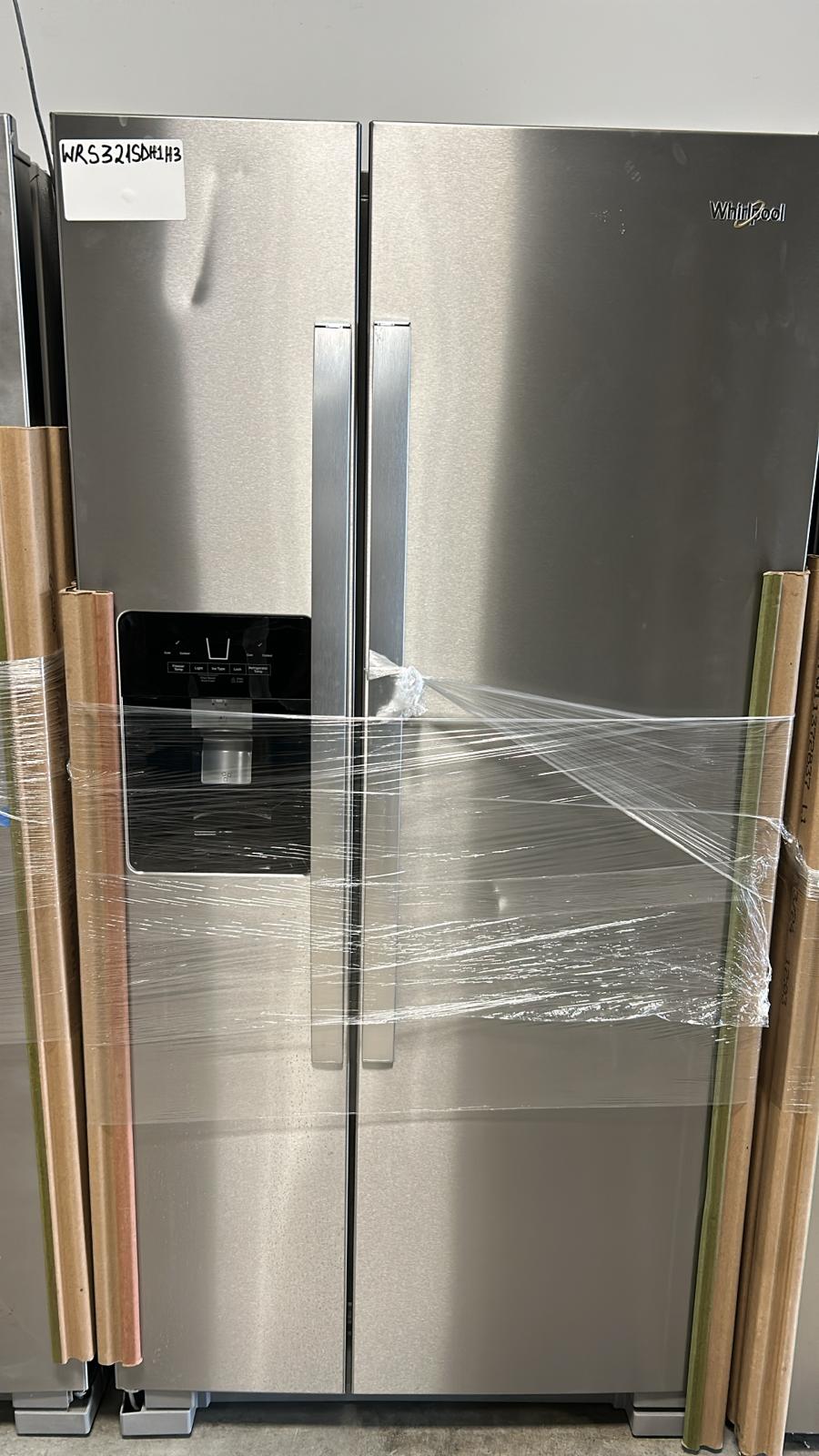 Whirlpool 21.4 cu. ft. Side-by-Side Refrigerator in Fingerprint Resistant Stainless Steel (model WRS321SDHZ) offers a spacious and efficient design to enhance your kitchen experience. Its 21.4 cu. ft. capacity provides ample storage, with adjustable frameless glass shelves and gallon door bins to accommodate various items.